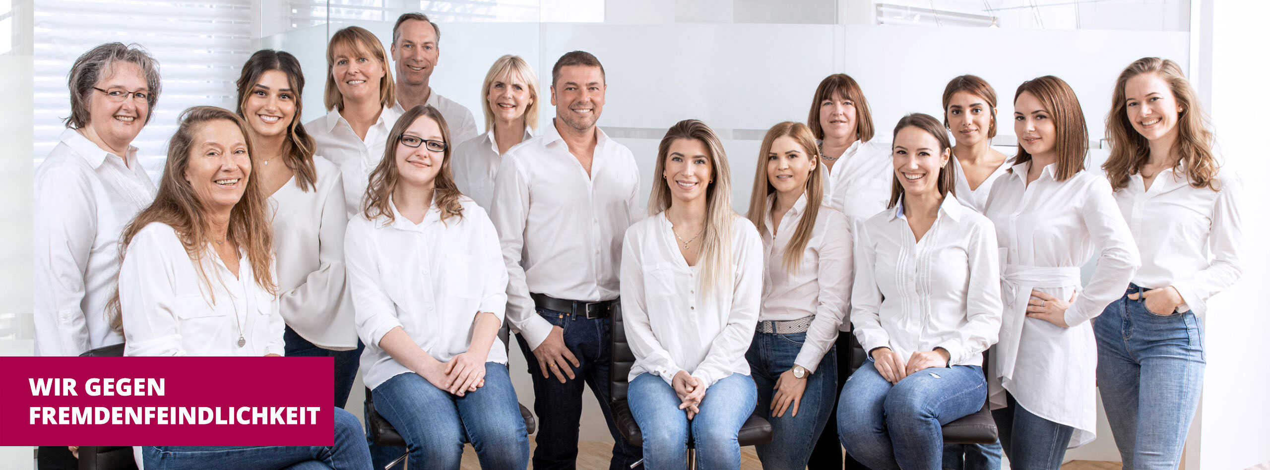 Wir, Robert Svoboda M. SC., Prof. Dr. David Sonntag, Lea Höller und das gesamte Team der Praxis Zahngesundheit Oberkassel, positionieren uns gemeinsam deutlich gegen Fremdenfeindlichkeit, Ausgrenzung und Diskriminierung jeglicher Art. Wir leben Vielfalt in einem toleranten, respektvollen Miteinander – Rassismus hat bei uns keinen Platz!